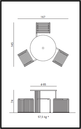 De Urbantime Octopus is een prachtige, tijdloze serie die geschikt is voor zowel binnen als buiten. Deze set voor drie personen bestaat uit een ronde tafel met een doorsnede van Ø85 cm en de bijpassende stoelen. De stoelen worden met metalen latten aan de tafelpoot bevestigd, wat zorgt voor extra stabiliteit en stevigheid. De picknickbank is gemaakt van gegalvaniseerd staal met een poedercoating, waardoor hij zeer duurzaam is. Voor extra verankering is het frame voorzien van gaten, waarvoor M8X90/30 roestvrijstalen bouten of gegalvaniseerde ankers worden geadviseerd. Het is ook mogelijk om het tafelblad te voorzien van een gat voor een parasol, zonder meerprijs. Geef dit duidelijk aan bij de bestelling.